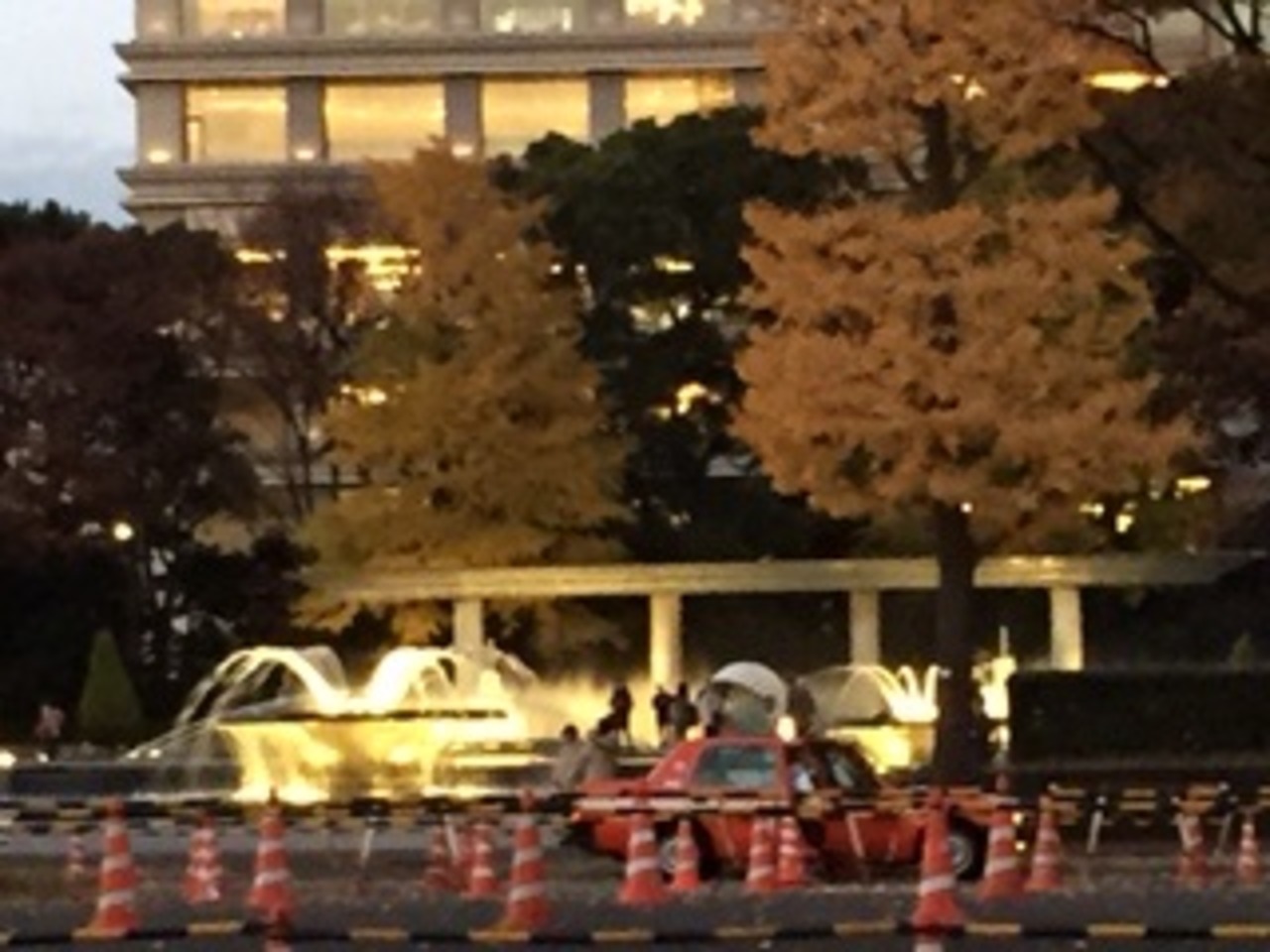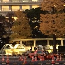 東京駅中央口から行幸通りを行き、和田倉門交差点を経て、右側にあります。昭和36年に天皇陛下と皇后陛下の御成婚を記念して整備されました。また、平成7年の皇太子御成婚の際も、再整備されたとのことです。夕方に訪れたため、ライトアップが綺麗でした。