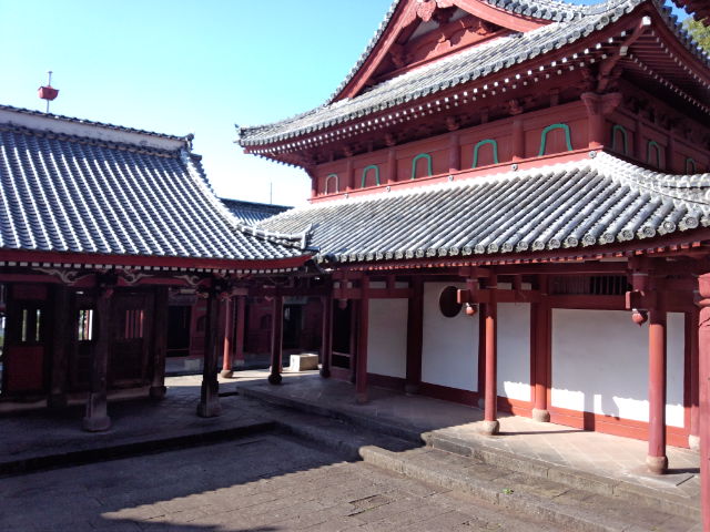 九州に5つある国宝建築のうち崇福寺では、2つも見ることができます。国宝は最初の竜宮城のような立派な門かと思いきや、2つめの門の「第一峰門」が国宝だそうです。遠くから見ると普通の門のように見えますが、近くで見ると軒下にある「四手先三葉栱」と呼ばれる複雑で巧妙な木の組み合せがとても素晴らしく、装飾も鮮やかでこれは見る価値はあります。意外と知らない人が多く素通りしているお客が多かったような・・・実は帰り際、売店の方に言われてはじめて知り、見逃すところでした。もうひとつの国宝である本殿は、中国様式の建築物で最古と言われるだけあって、境内全体が中国映画の世界に居るかのような雰囲気を味わうことができます。本殿正面の関帝堂には関羽像が祀られていますので、三国志ファンにもオススメです。