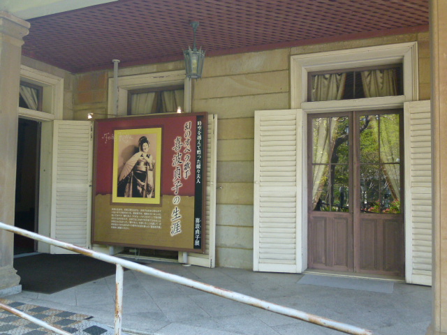 明治初期以降の伝統的な洋風デザインで、三方をテラスに囲まれた平屋建てです。国の重要文化財に指定されているので、ぜひお立ち寄りください。江戸時代以降に発明された本瓦の丸と平を1枚に合わせた形の軽量の桟瓦(さんがわら)を使用しているようです。またベランダ軒下の格天井も美しく見どころのひとつです。館内には当時の調度品がご覧いただけます。防犯カメラ作動しているようなのでマナー良く鑑賞しましょう。