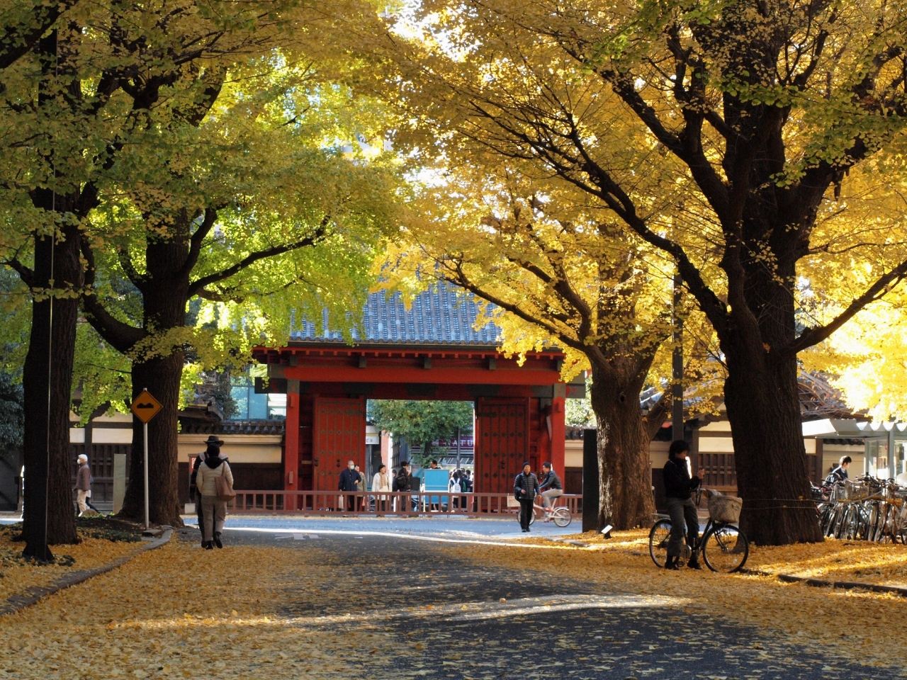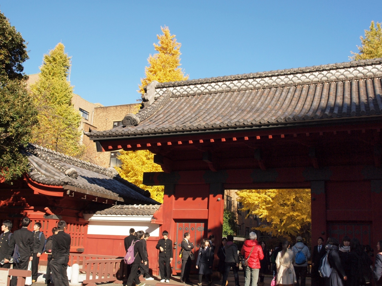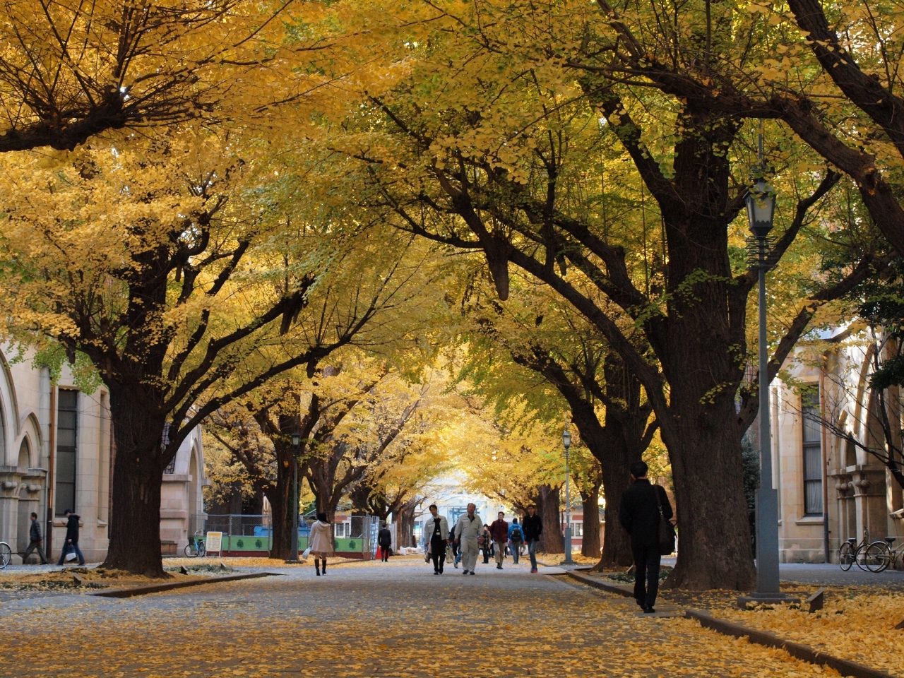 東大構内にはシンボルである銀杏の並木があります。銀杏はいずれも幹が太くて立派です。とくに正門から安田講堂へと伸びている銀杏並木が見事です。