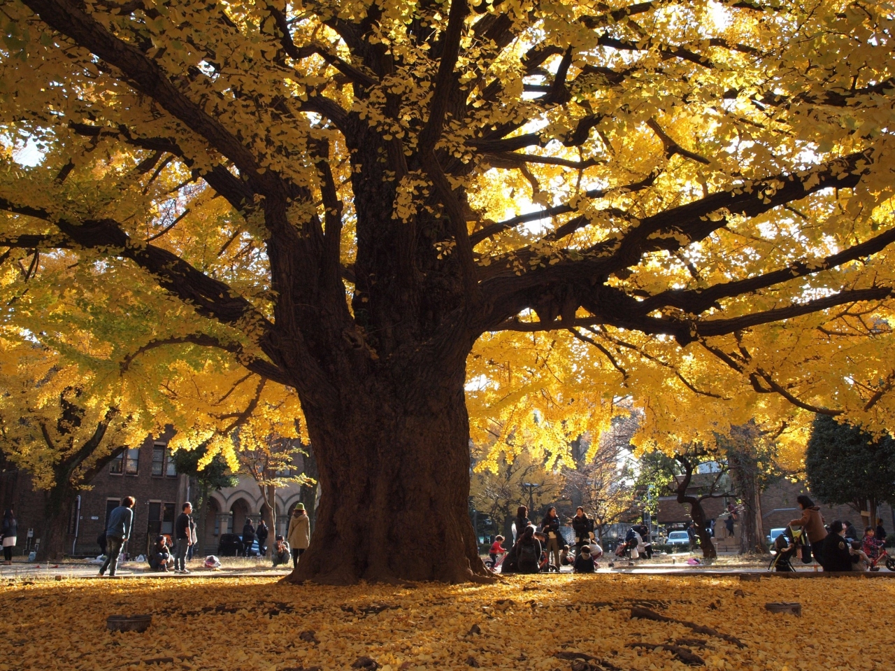 並木とは別に、工学部6号館の前にとても大きな銀杏の木があって、その木の周辺では大人も子供もたくさん集まって団欒したり遊んだりしていました。