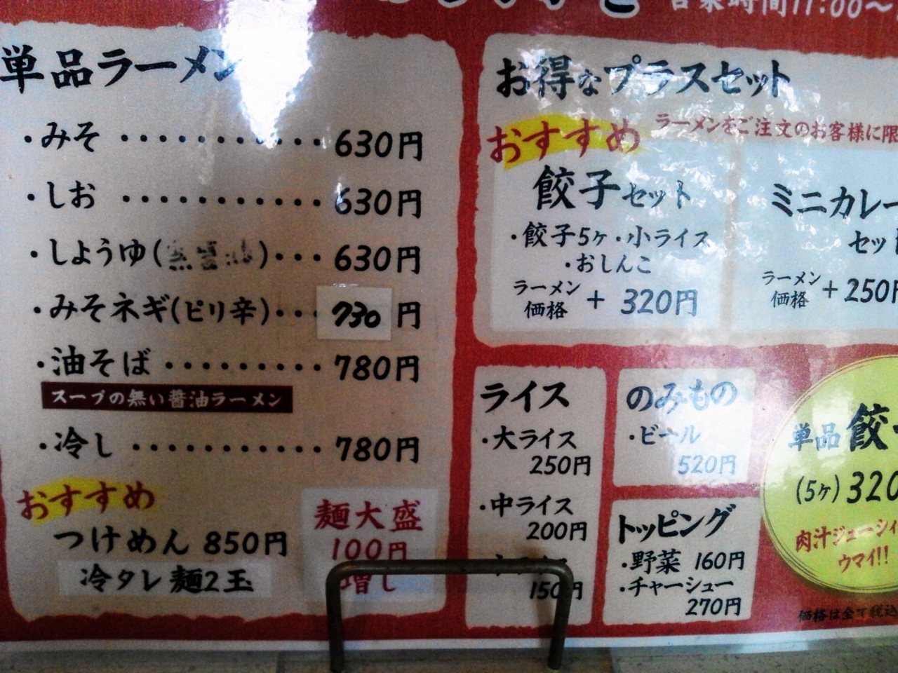 みそネギラーメン(730円)を注文しました。ネギはたっぷり入っていますが、その他の具が少ないです。チャーシューも有りません。