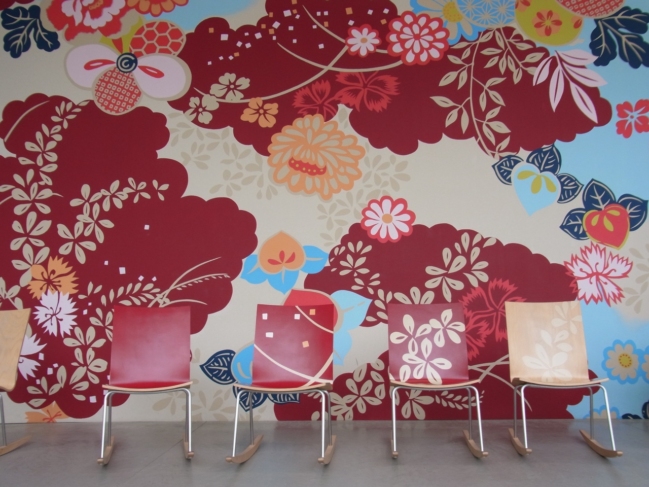 市民ギャラリーの加賀友禅の壁画とチェアーはあでやかで素敵でした。