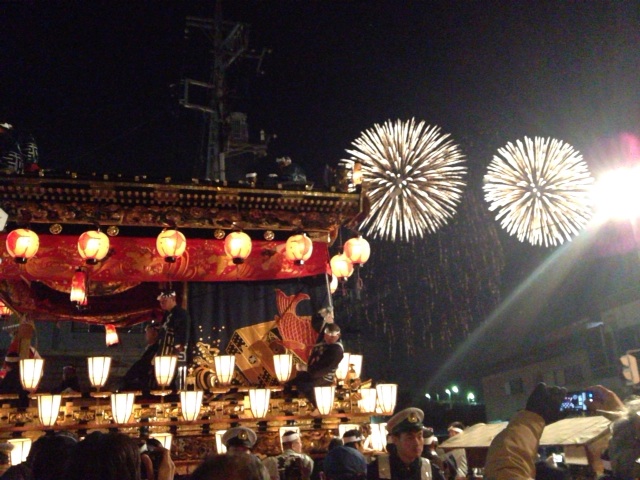 伝統的で素晴らしいお祭りです。豪華な屋台の運行と冬空に上がる花火の美しさ。おびただしい数の露店でおいしい焼まんじゅうやうどん、みそポテトなどのB級グルメも。