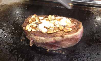 日暮里(谷中)にあるもんじゃ屋さんの支店?(もう店は別次元ですけど)で確か市ヶ谷にもあったと思います。豪快な肉の塊を焼いてくれるのが名物です(4名以上)。海鮮焼きともんじゃがセットになっています。もんじゃは味が濃いめで既に味付けされています。