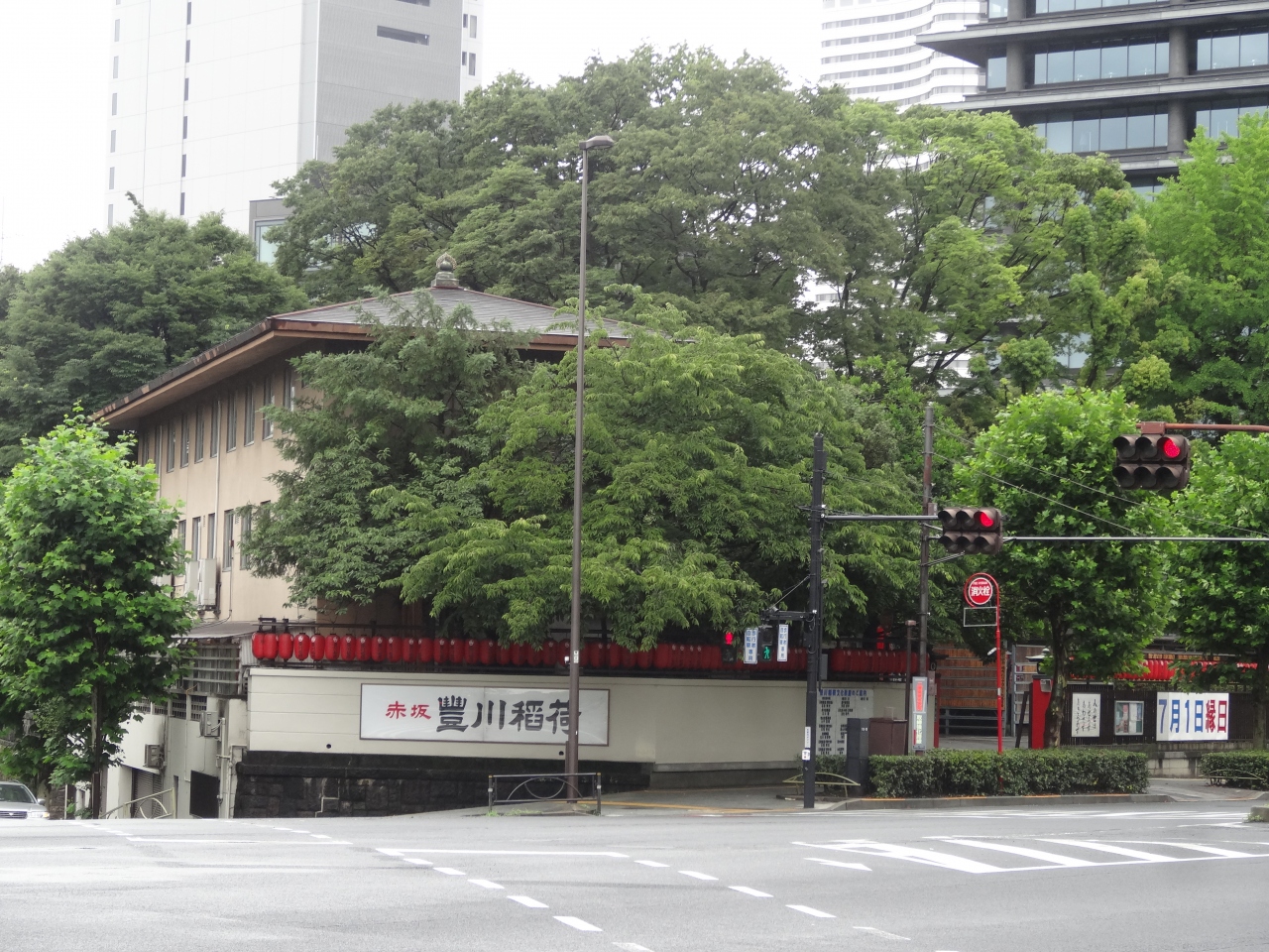 東京・赤坂のお稲荷さん。豊川稲荷の正式名称は「宗教法人 豐川閣妙嚴寺」というもの。赤坂見附駅か永田町駅からともに徒歩で5分程度に位置しています。遠目から見ると、赤の鮮やかさが印象的です。場所柄、いつ行っても多数の参拝客でにぎわっています。