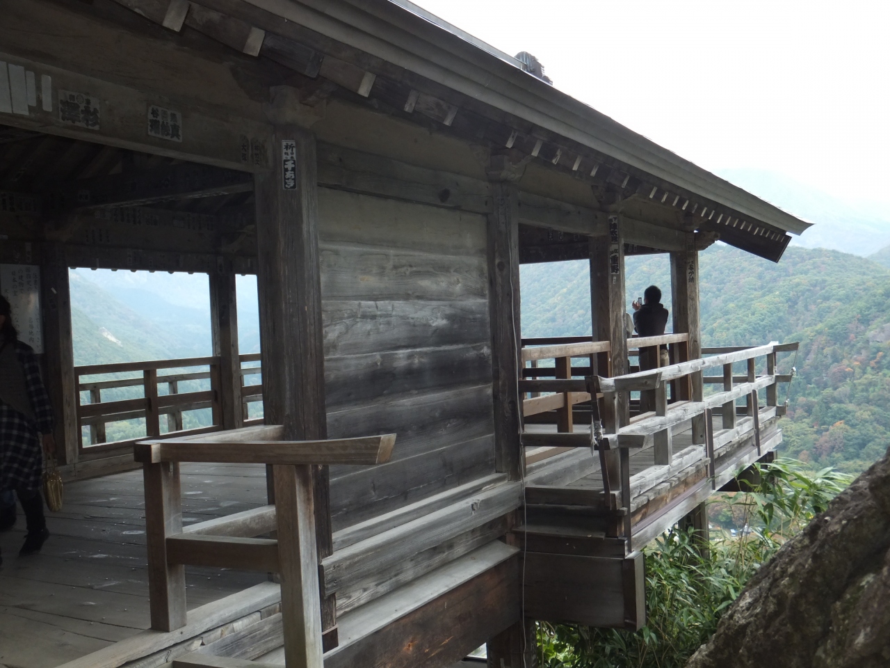 仁王門や奥の院など歴史的建造物もたくさんあり、そしていよいよ五大堂、登った甲斐はあったと実感するほど歴史を感じさせる古いお堂で、崖に突き出したような造りで眺めは最高です。眼下には周辺の様子が見え、JR仙山線を走る列車の動きもよく見えました。