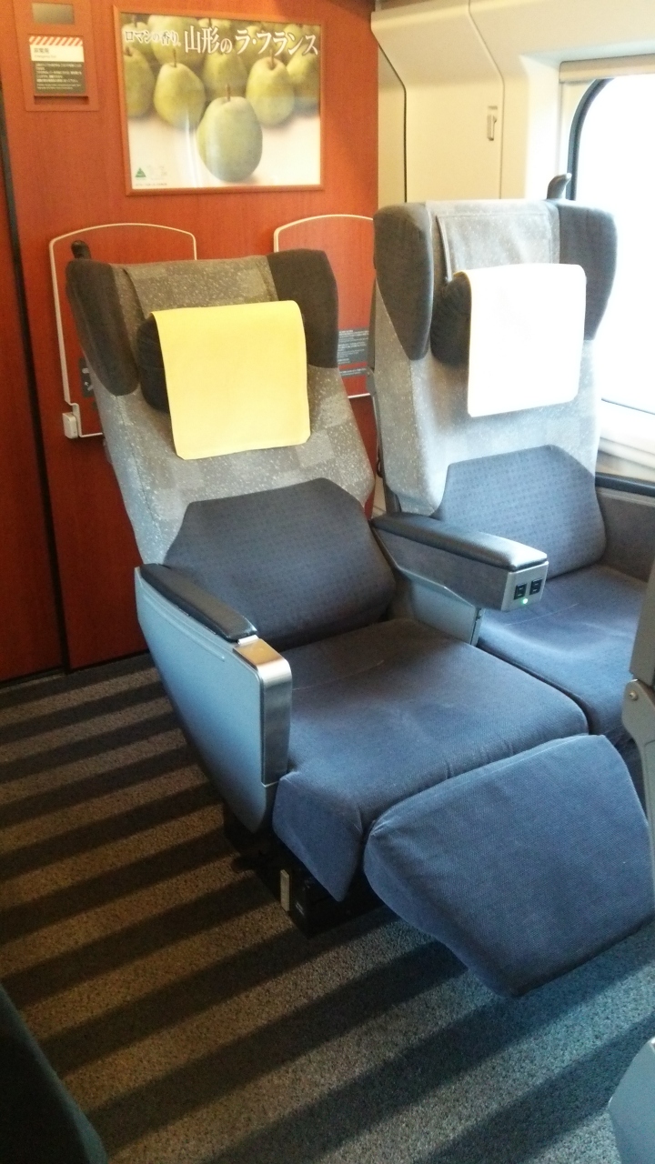 山形新幹線は山形方面の車両ですが、ホームのかなり端にとまるので、余裕をもってホームにいかれることをおススメします。トイレは全車両で3つしかなく、いつも混雑している印象。車内販売の方々がカートを置かれていたりするので、せまい通路が更に狭くなっていることもたびたびで、少し気になります。風景を楽しみたい方は、CDの番号をチョイスされるといいと思います。