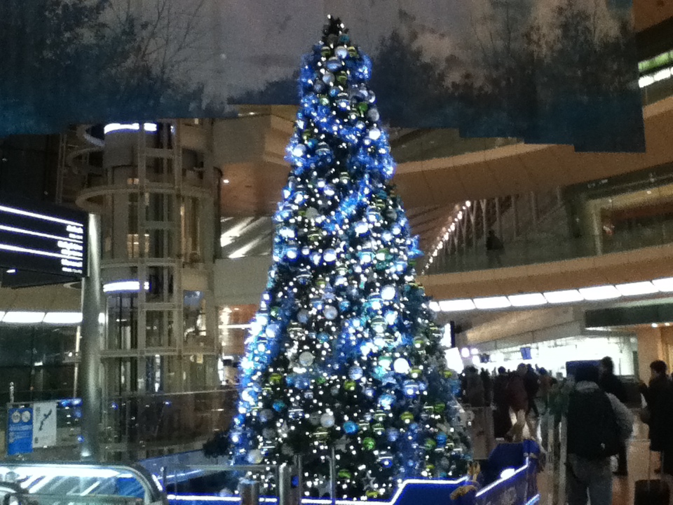 ANAやソラシドエア、エアドゥ、スターフライヤー北九州空港行き以外が入っているのが第二ターミナルです。綺麗だし、アッパーデッキトーキョーなどの飲食店や、パン屋さんやケーキ屋さんにお気に入りのショップがあって気に入っています。ターミナル内はとても広くて、目的地によってはすごく歩きます。先日訪れた時は写真のクリスマスツリーが飾ってあっておしゃれでした。