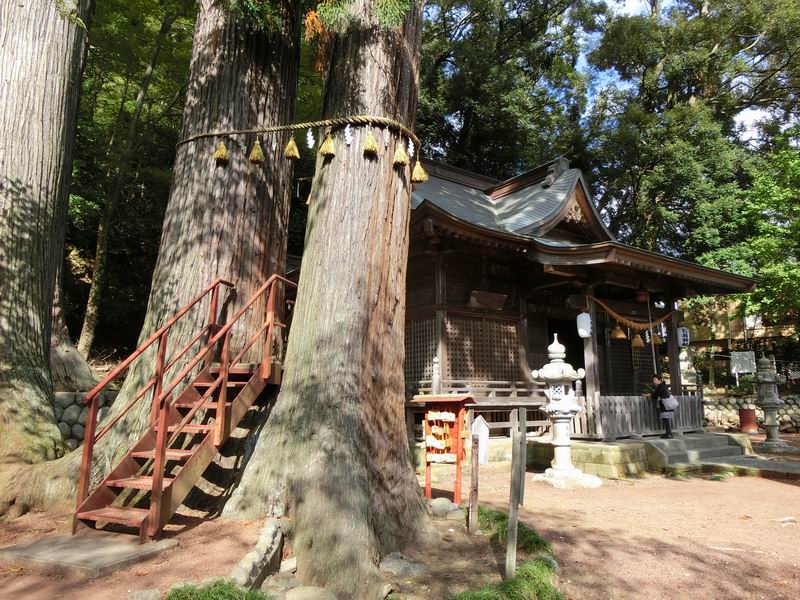 修禅寺の鬼門にあたり、元は修禅寺の鎮守だったとのこと。源範頼が幽閉され自害したと伝わる場所でもあります。社殿に向かって左側には「子宝の杉」。根元が一つで二本そびえる杉があり、二本の間を通ると子宝に恵まれると言われています。社殿右には天然記念物のイチイカシの巨木。修禅寺や独鈷の湯から近い割に人が少なめで、静かに参拝できます。
