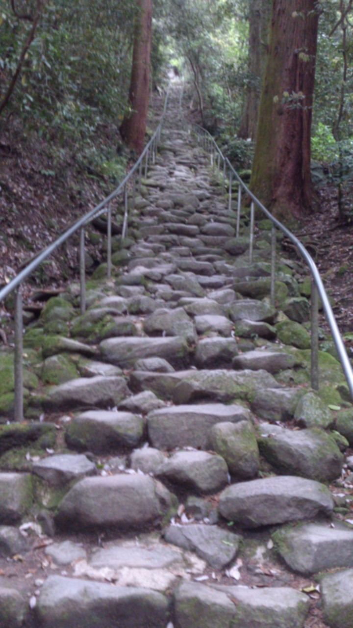 それは非常に険しい自然石の乱積みされた石段です。急で距離もあります。