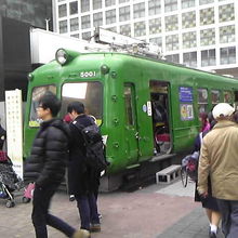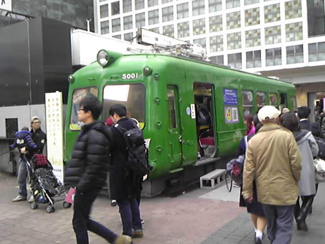 渋谷のハチ公前広場に設置してある、東急電鉄の車両です。