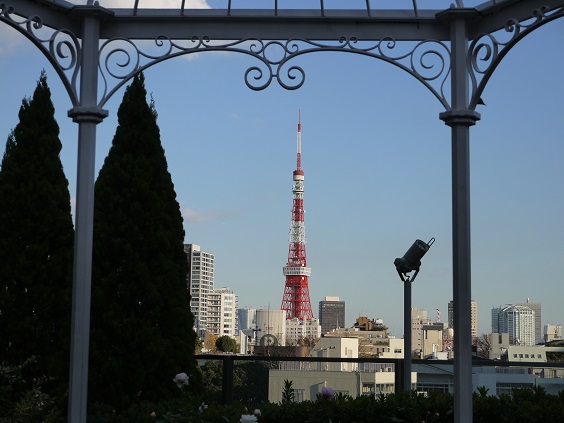 東京タワーには何度か行ってますが、今回は六本木ヒルズから眺めることにしました。タワーの近くで見るのも良いですが、離れた場所から眺めるのも良いものです。ヒルズ内にある庭園にアーチが有るのでカメラポイントにちょうど良い。