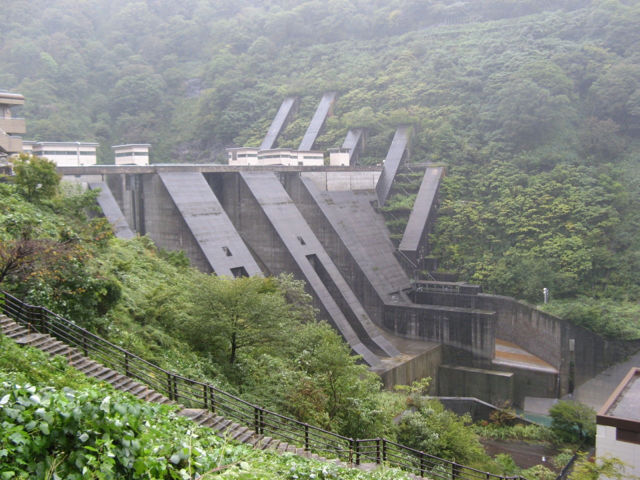 「宇奈月ダム」は黒部川に設けられた重力式コンクリート型の多目的ダムで、洪水調節、上水供給、発電を担っています。
