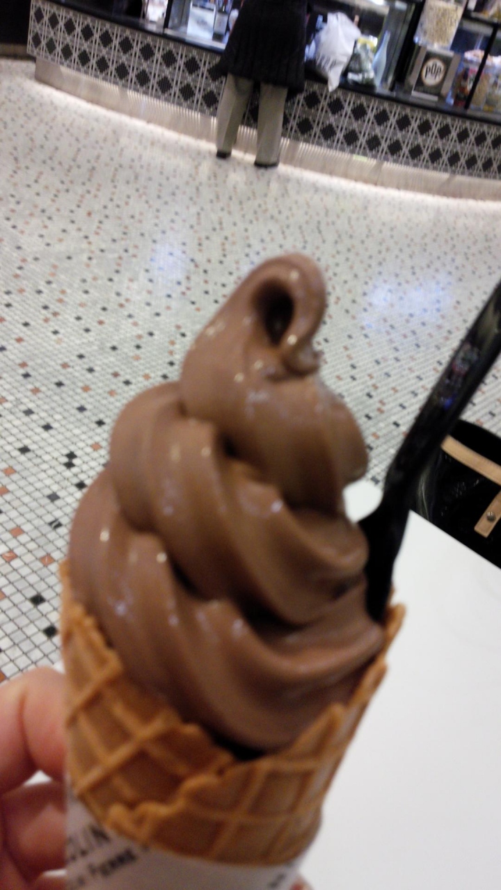 チョコレートのみソフトクリームも用意されていて、素材は同じで食感がやわらかいだけだそうです。ソフトクリームはコーンとカップが選べて一個400円程度でした。