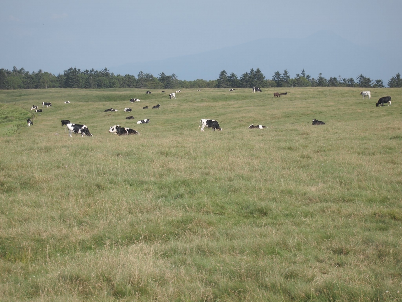 お盆時期、駐車場は満車でしばらく待ちました。が、しばらく待てば入れる程度です。景色は、まさに絵本のような草原、そしてのどかにあるく牛たち。眺めていると心が癒されます。どこまでも歩いて行けそうですが、ずっと同じ景色なのでしばらく歩くとちょっと飽きてきてしまいました・・・。人にもよりますが、そこまで長居しなくても十分楽しめると思います。