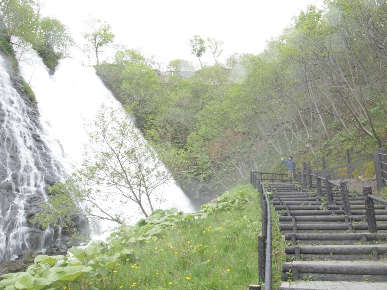 知床観光の際に立ち寄りました。駐車場はそれほど広くないものの、ツアーバスもたくさん止まっていました。このときは、急に暖かくなり、雪解けがいっきにすすんだとのことで、通常以上の水量だったようです。あまりの水量に水しぶきがすごく、近づけないほど。ものすごい迫力でした!