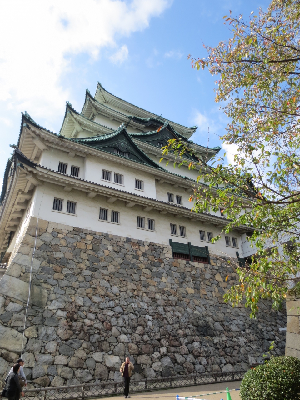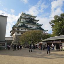 名古屋城敷地内に実物大の鯱鉾が飾ってあります。名古屋城内にもレプリカありまして、実際に乗って記念写真を取ることができましたよ。また、展示が意外に面白くて外見を忘れて楽しめました。名城にはなんとエレベーターがついています。一気に5階まで上がるもよしです。最上階からは名古屋市内を一望できます。