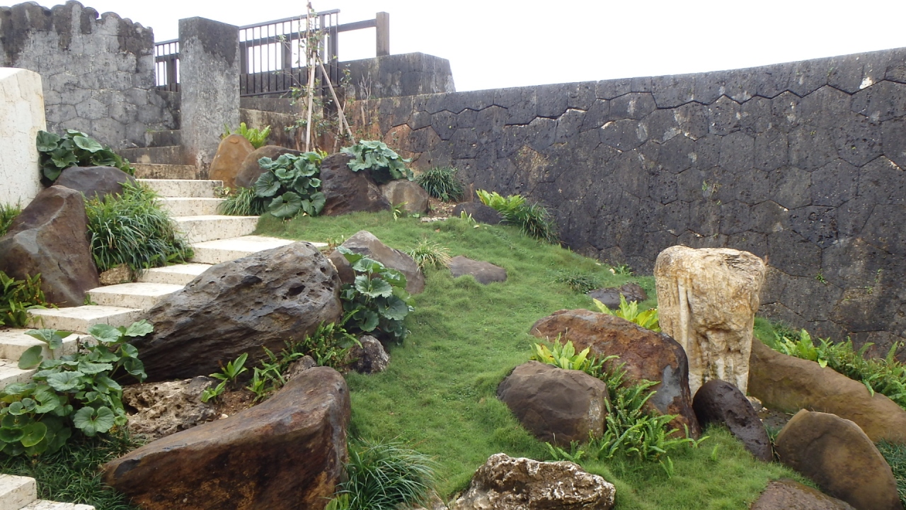 庭園は、ソテツや松が主体で、いかにも南の国に来たという感じがします。