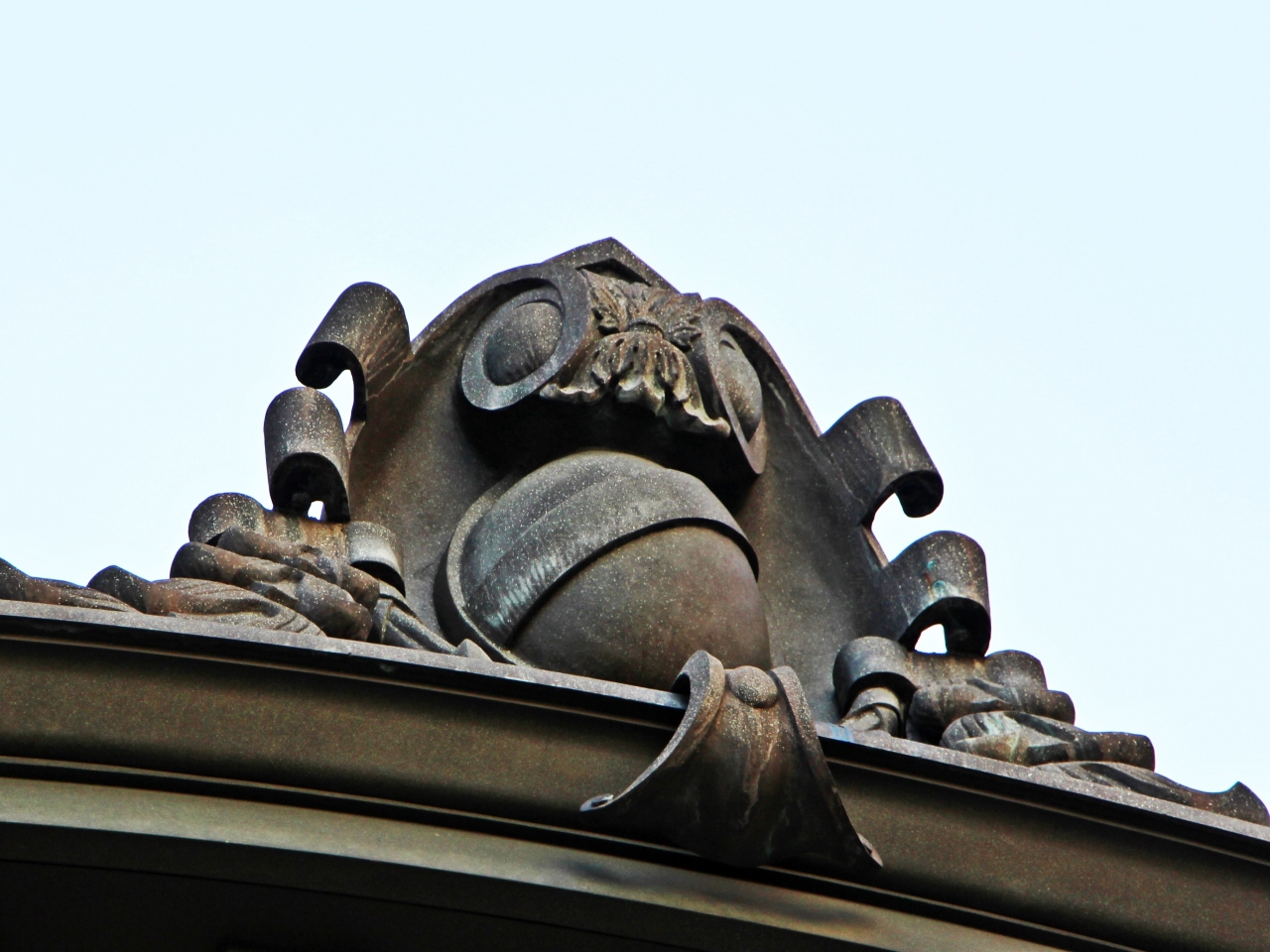 そして、屋根上にいるこの小さな像は蚕の繭を抱くおかあさん;蚕蛾だ。