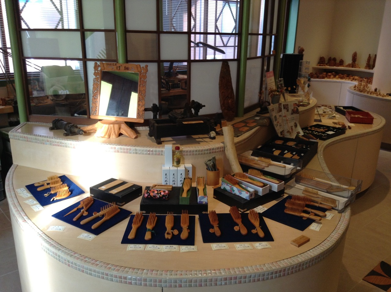 別府つげ工房は、市中心部から少し離れた所にあるつげの木を使った櫛や飾りなどを製造、販売しているお店です。