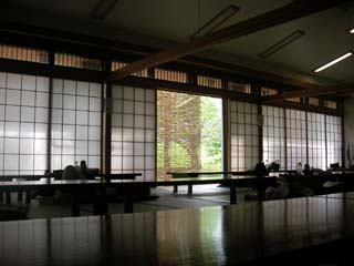 釜無川浄化センターの先に蔵のような建物があり、市川大門駅から1時間ぐらいでまほらの湯に着きました。玄関を入ると靴ロッカーがあり、受付で温泉博士9月号を見せると町外料金600円が無料になり、廊下を進むと食事処の先に浴室があります。