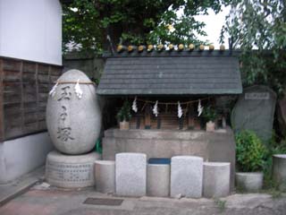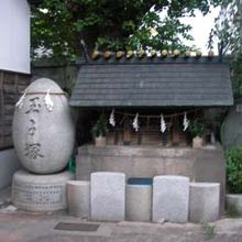 海幸橋の跡の場外市場の突き当りに波除神社があり、地元の老舗が提灯を出していて、境内に入ってみると玉子塚があり、両側に夏越し大祭で使われる獅子頭が飾ってありました。