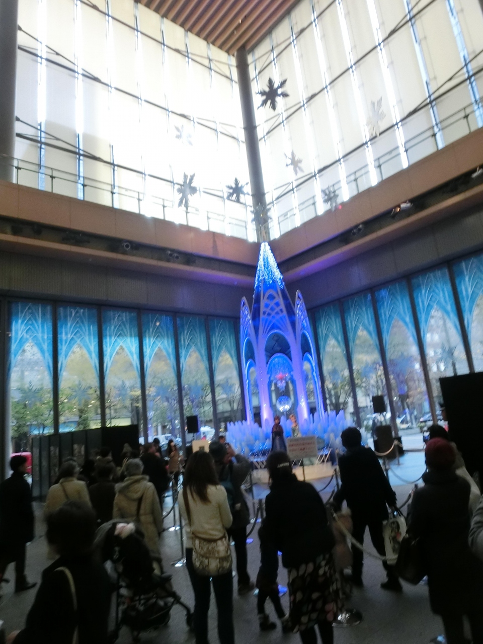 ディズニーのアニメをテーマにした電飾ツリーがあり、その前で写真撮影ができるようだ。