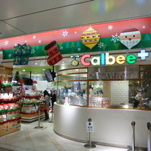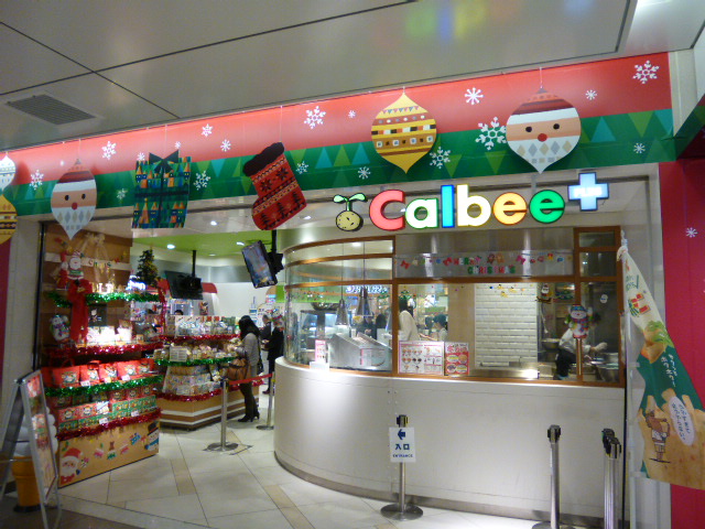 ラーメンストリートでつけ麺を食べた後、おなじ東京駅一番街の、おかしランドにある「カルビープラス」まで足を伸ばしました。クリスマスを前にしている事もあり、お店の前にはサンタの飾り付けが。クリスマス商戦真っ最中という印象でした。