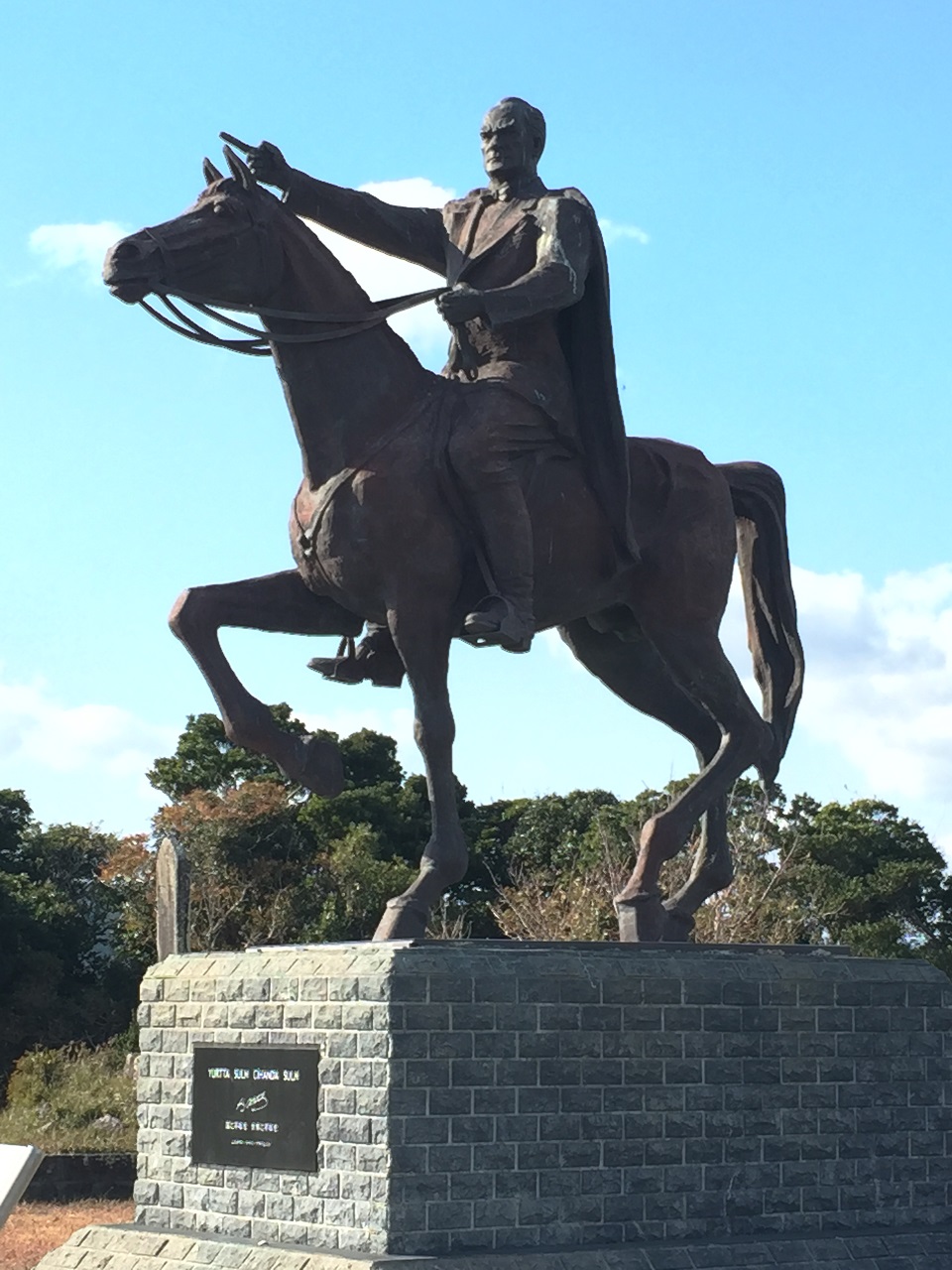 樫野崎灯台の敷地内にある、かなり大きくて立派な騎馬像です。