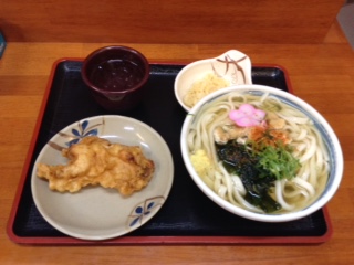ぶっかけうどんと天ぷらのトッピングで350円くらいだったかな。