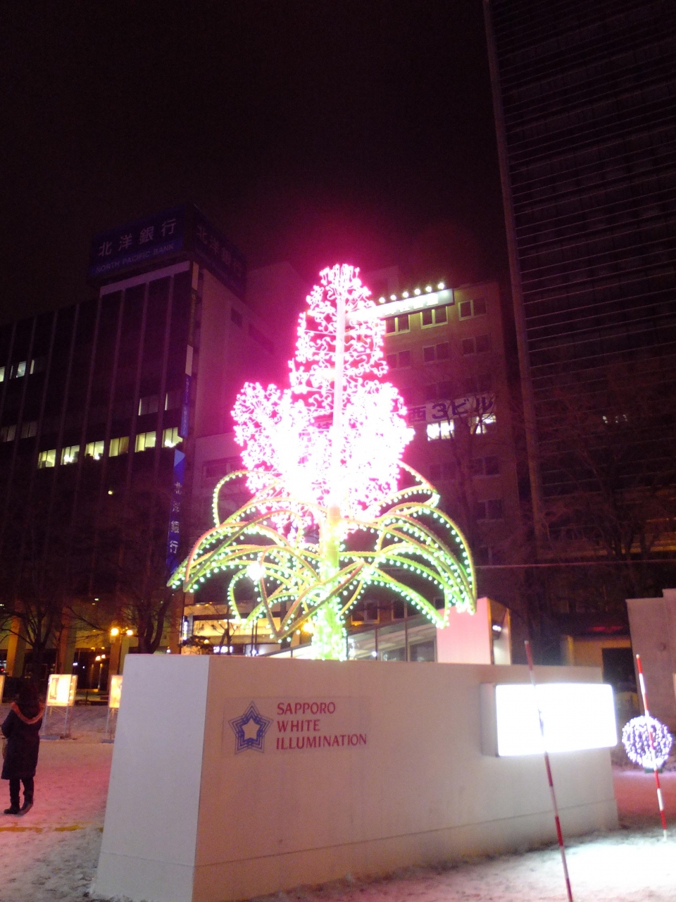 手前にはクリスマスツリーがいくつかあり、十分に目で見て楽しめるイベントですが、大雪には気を付けましょう。