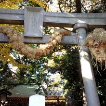 鳥居には、ちょっとかわいいお顔の大蛇がからまっていますが、