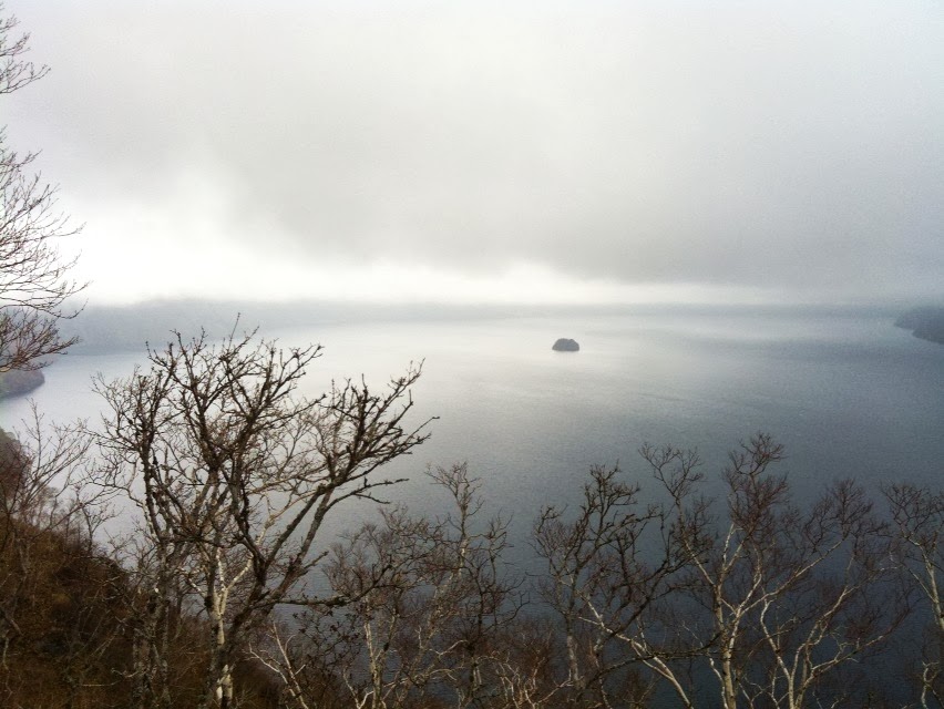 小雨が降る中、せっかくだからと摩周湖へ。ちょうど雨も降ったりやんだりしていたので、なんとか湖面を見ることができました。その透明感はあまりよくわかりませんでしたが、霧の中にぼんやり見える姿はとても神秘的でした。お土産屋さんは、この天気でもたいへん混雑していました。