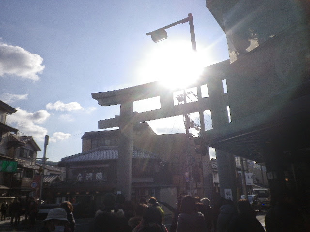 JR宇治駅から平等院へのアプローチは、宇治商店街を抜け宇治川に突き当って右折。そこに大きな鳥居があり、そこから平等院表参道が始まります。抹茶ソフトクリームを売る店が多いのも宇治ならでは。宇治橋通り商店街と比べると観光化が加速していますね。