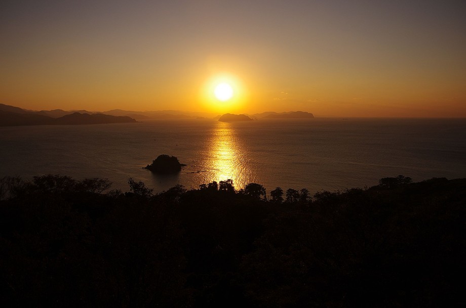 笠山の山頂には展望台がありここから眺める夕陽がとても綺麗なんです。