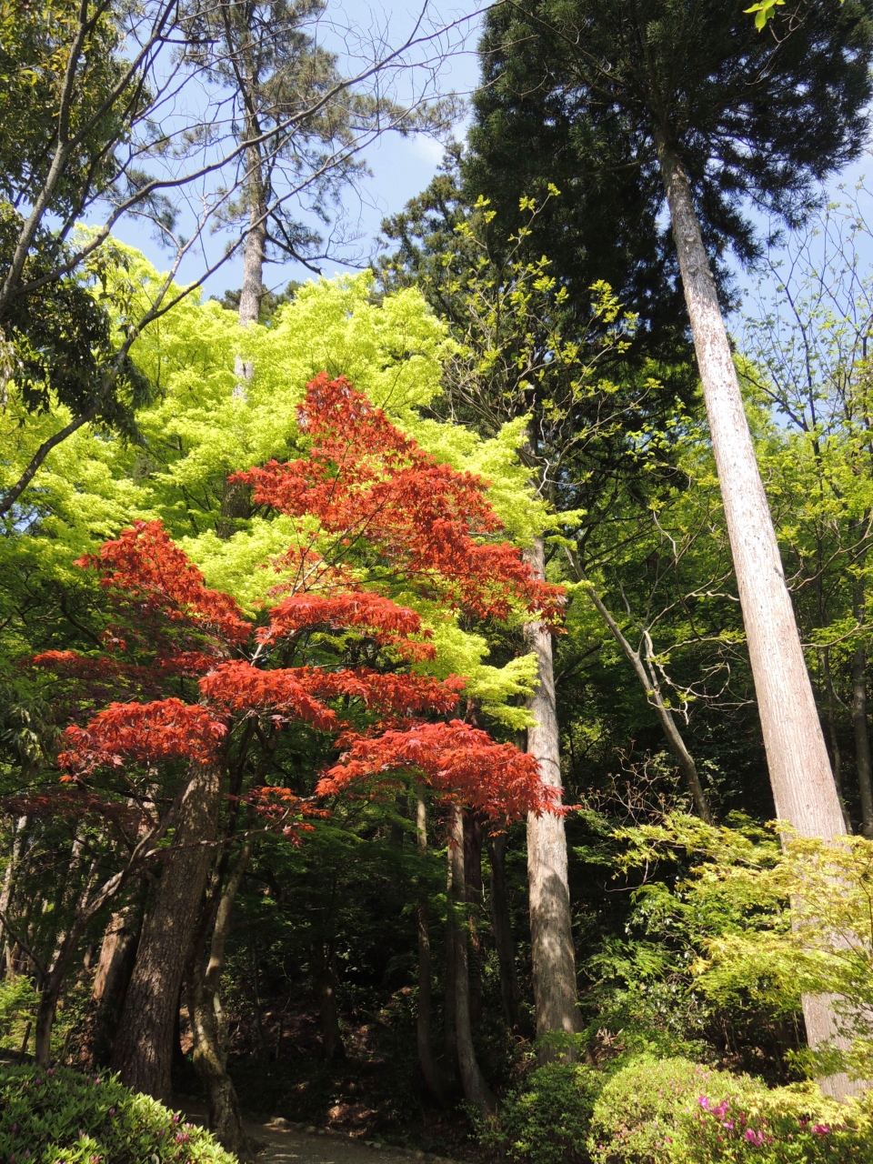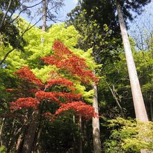 赤い傘が辺りの緑の中に映えて、絵になります。