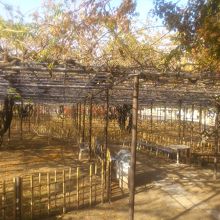 岡崎城の赤い神橋を渡り少し城外へ出たところにあります。訪れたのが冬なので、枯れた藤棚しか見れませんでしたが、かなり大きな藤棚でした。17本の藤が植えられていますが、中には120年以上の古株がありました。市の天然記念物に指定されているようです。4月下旬には、五万石藤まつりが開かれ、とても見ごたえがあるようです。