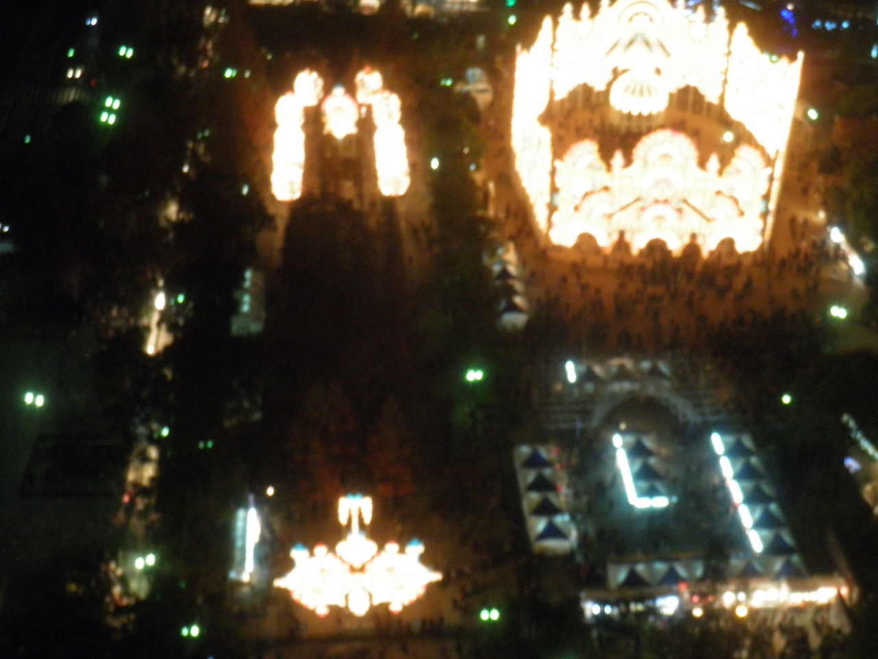 神戸のルミナリエを観たあと、三宮駅のほうへ歩いていくと、人がたくさん並んでいるビルが見えたので並んでみると、神戸市役所24階展望ロビーへ行くエレベーターの列でした。 混んではいるけど、10分ぐらいで展望台に上がれました。 神戸の夜景とともに、ルミナリエを上から眺めることができました。 ただ、地上から眺めたほうが迫力あってよかったです。