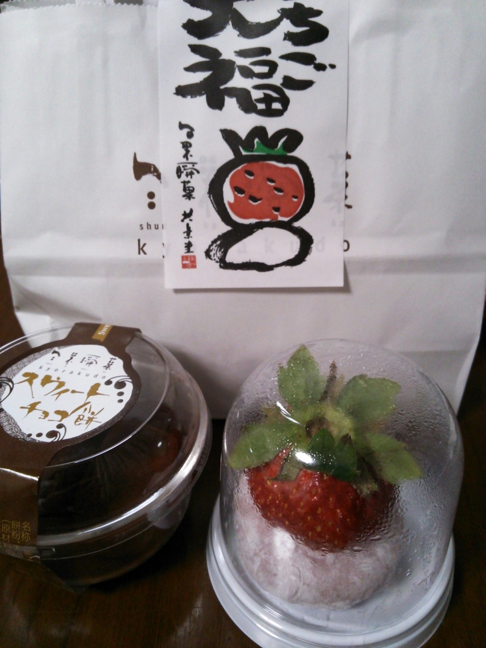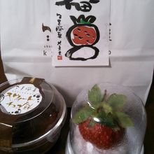 おおきなあまおうが一個逆さまに乗って(大福に突き刺さって?^^)います。