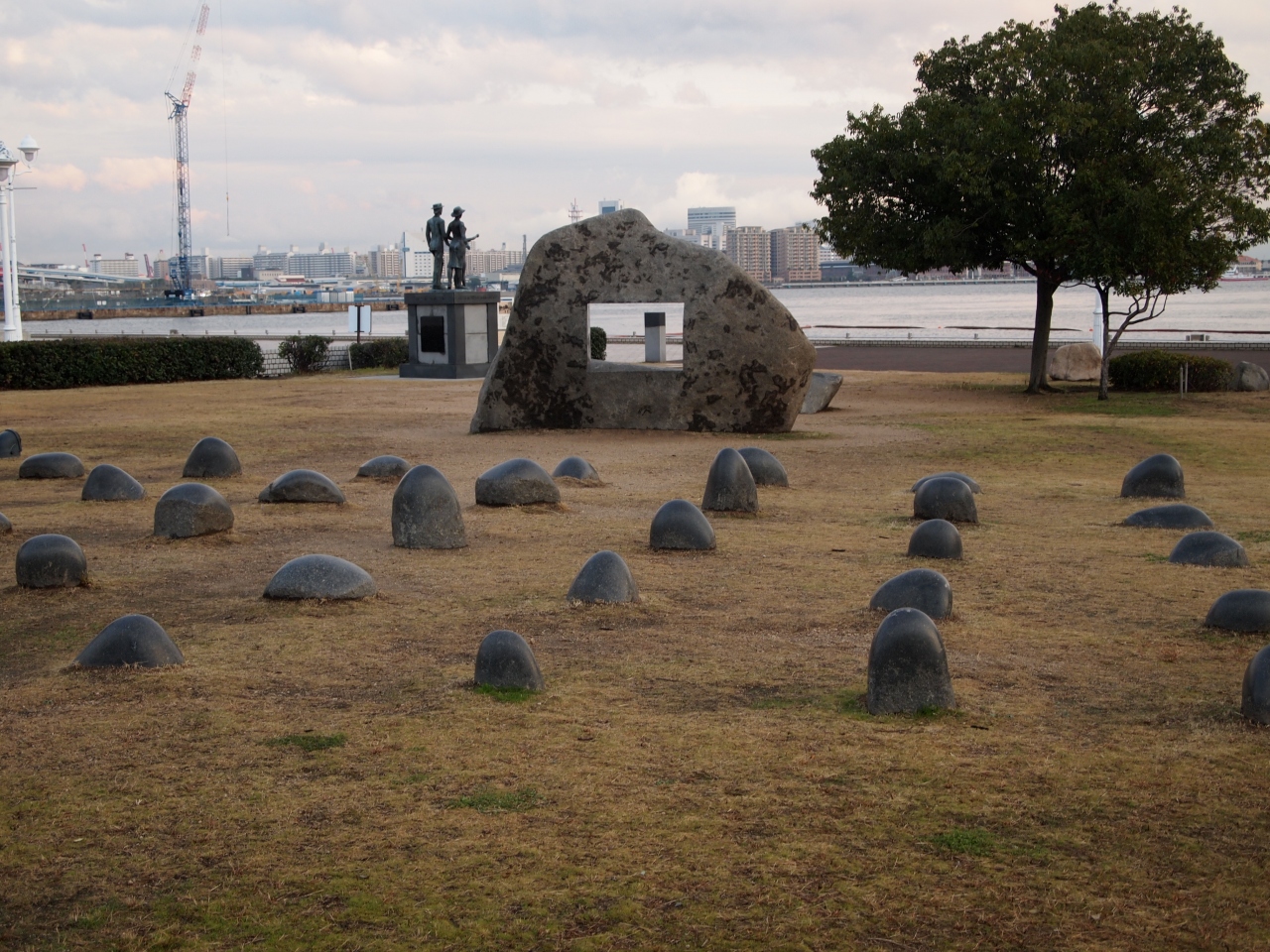 メリケンパークの南側の芝生の場所に記念碑があります。