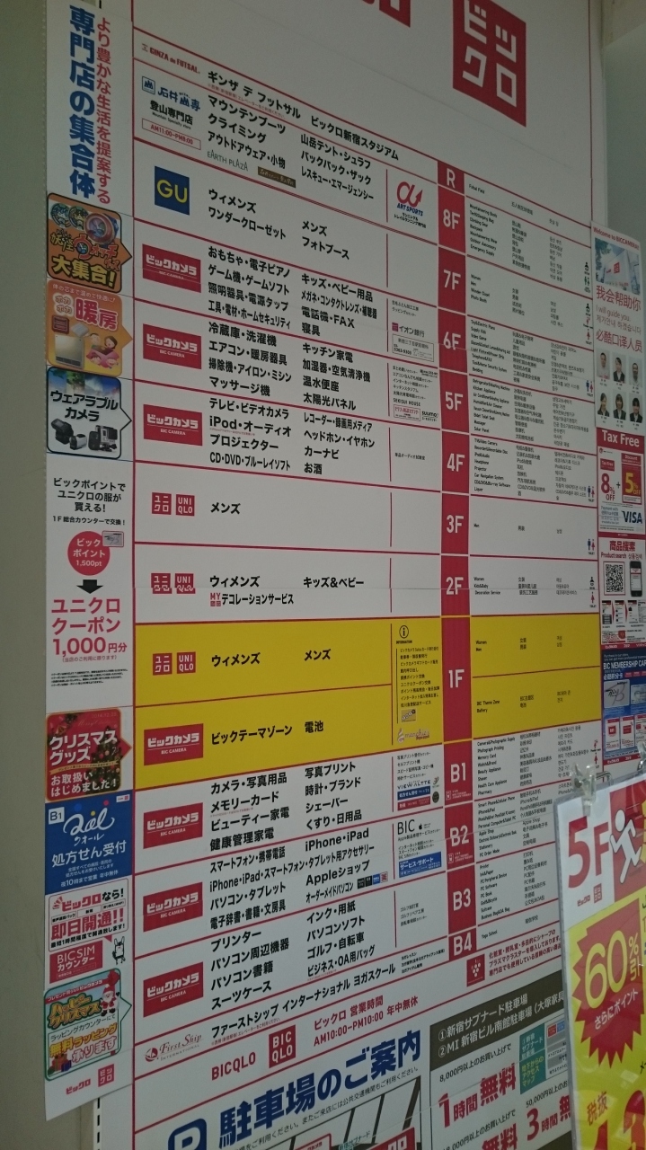 平日のお昼に新宿に来た際、一人で訪れました。名前の通り、ビックカメラとユニクロが合体してごちゃ混ぜになったお店です。このお店の面白いところは、ビックカメラとユニクロの売り場と綺麗に分かれているわけではなく、ヒートテックの隣にヘッドフォンなど売り場が混合しているところです。