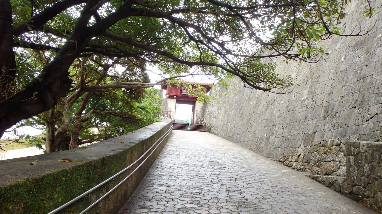 この門を少し下ったところから振り返ると、右手に城壁、石畳の坂が続いて見えます。何となく、8月に訪れたアクロポリス(ギリシャ)を思い出させてくれる雰囲気でした。