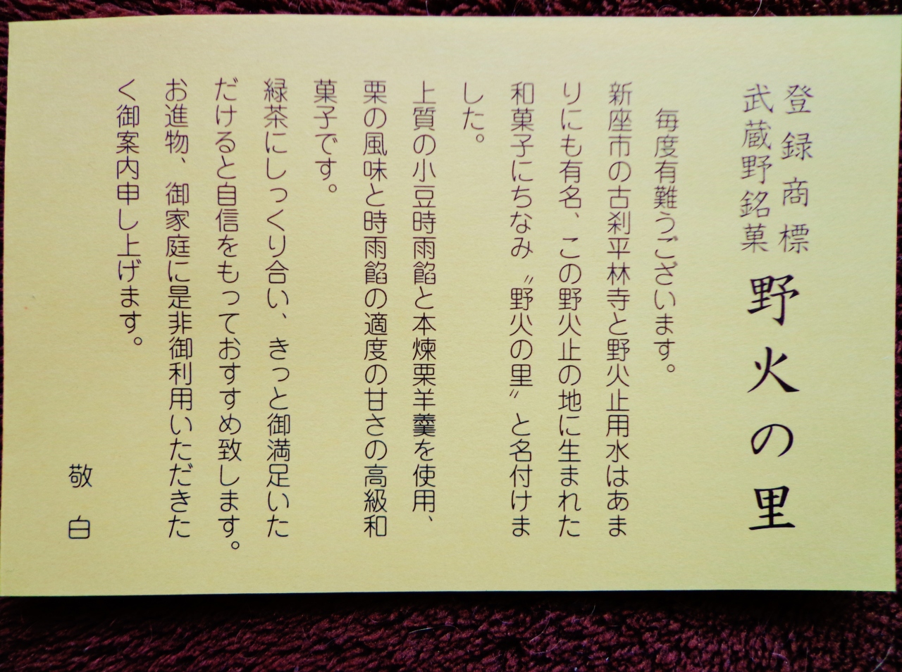野火の里も非常に美味しい銘菓でした。
