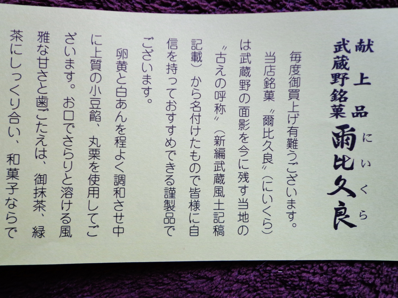 献上銘菓 爾比久良(にいくら)