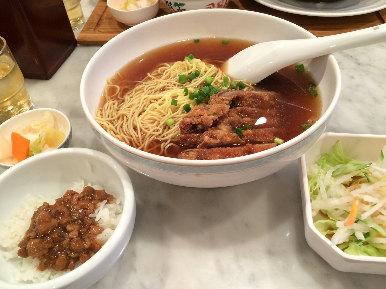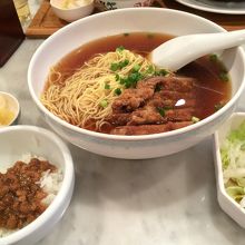 汐留シティーセンターにある台湾料理のお店。麺類がメインのようで、鶏肉のカツがのったラーメン?を注文。