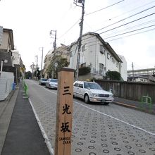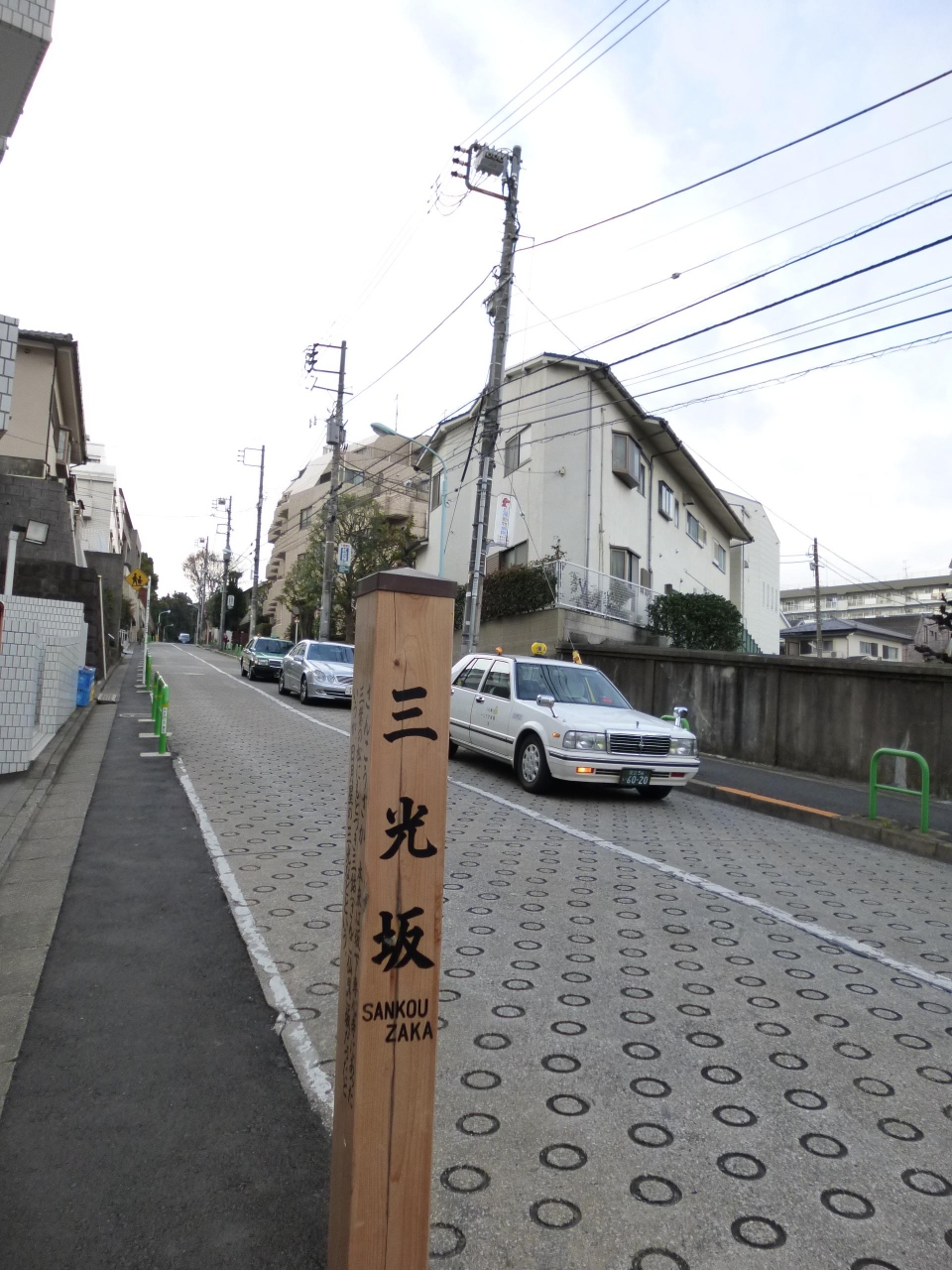 三光坂は、大きな通りに通じていない事もあり、昼夜ともに交通量、人の姿とも少なく、個人的にはとても風情を感じる坂の一つです。
