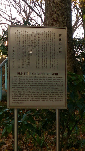 上野公園の管理事務所のすぐわきにこんもりとした土盛りの場所があり、その上に上がるための階段がついています。説明板がないとな何かわからい場所ですし、通り過ぎてしまうようなところです。前方後円墳とのことですが原型はとどめてはいないようです。