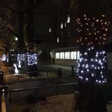 横浜関内の中心的な通りである日本大通り。夜になると、街路樹にLEDの飾りつけを巻きつけて、ライトアップしていました。時たま、鹿などの動物の装飾もあります。いい雰囲気ではありますが、官庁街だけあって、飲食店が少ないので、いまひとつ賑わいがないのが、残念です。