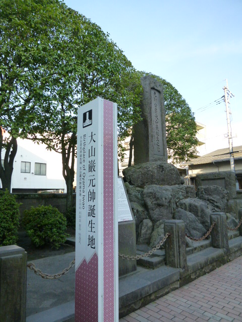 今日は鹿児島市内を散策しています。鹿児島市内には記念像や碑がたくさんあります。その中のひとつである「大山巌元帥誕生地」です。戊辰戦争、西南戦争、日清日露戦争など激動の時代を過ごし陸軍一筋。また、親戚の西郷隆盛と戦った西南戦争は辛い思いだったと思います。この加治屋町には、他に歴史上の人物の記念碑などありますのでセットで楽しんでください。
